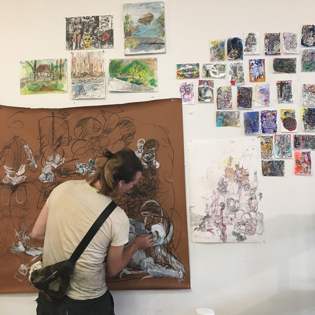 Each year, a new Alumni Artist in Residence receives a key to the Harlem storefront studio space as well as an art material stipend and opportunities through outside initiatives to help nourish and promote their individual artistic practices. Sustained engagement throughout all stages of a participant’s journey offers immeasurable benefits. These benefits include access to necessary services, free virtual therapy, and the opportunity to mentor current youth.